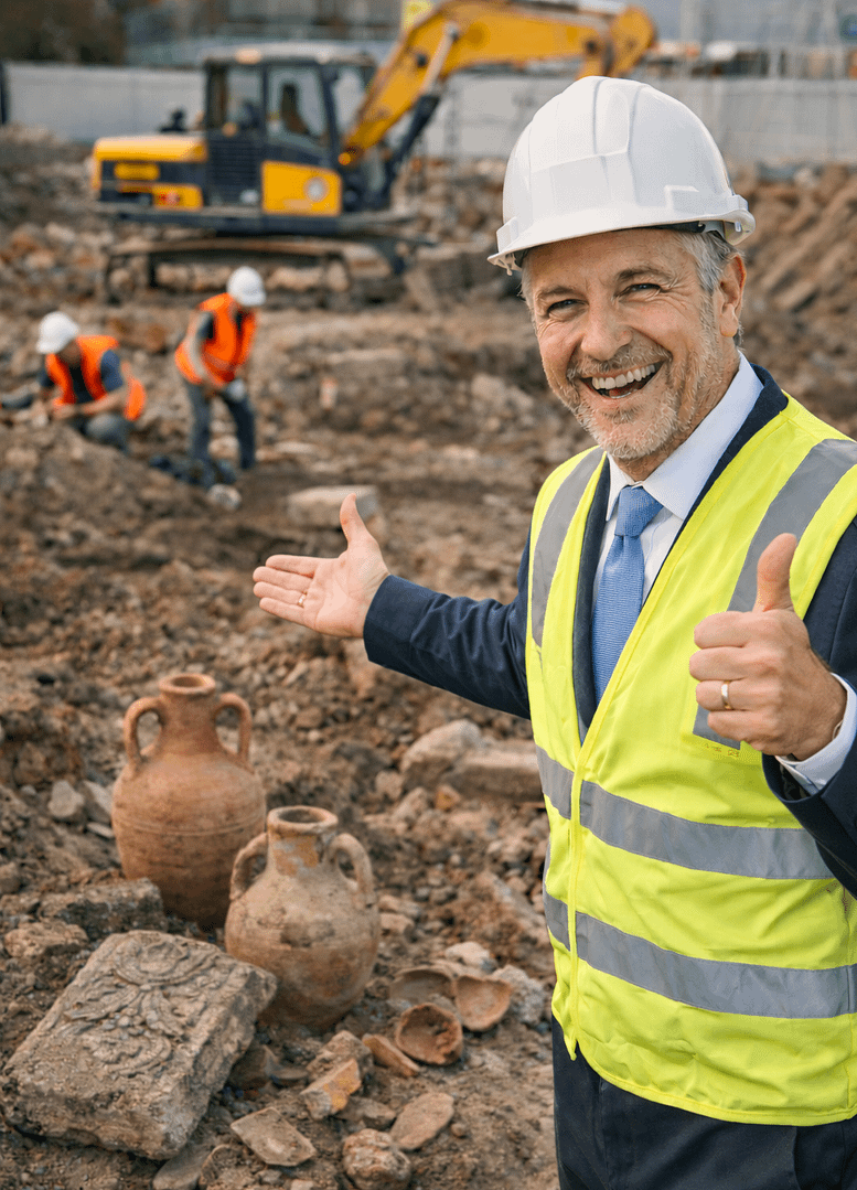Arheološke raziskave ob gradnji so invaziven postopek na območjih evidentirane arheološke dediščine. Naša usposobljena ekipa strokovno spremlja odstranjevanje objektov ter vse posege v tla, s čimer zagotavljamo varstvo kulturne dediščine ob hkratnem poteku gradbenih del.