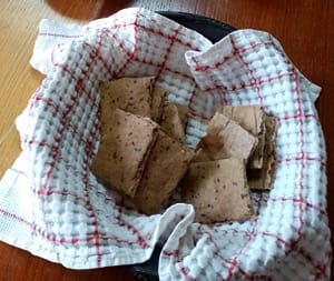 Lanena semena namoči v vodi za nekaj minut. Nato vse sestavine zmešaj v gladko tekoče testo. Testo vlij v pekač in peci pri 180 stopinjah pol ure. Še vročega nareži.