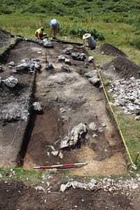 Pri arheoloških raziskavah smo odkrili številne odlomke posod, bronasto rimsko zaponko, konico železnega noža, žeblje. Odkriti so bili tudi kamniti predmeti: puščična ost, strgalo, klina, tri jedra, več odbitkov in šest brusnih kamnov.