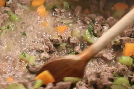 Med z malo vina zavreš, dodaš lovor, poper, dateljne in žafran.